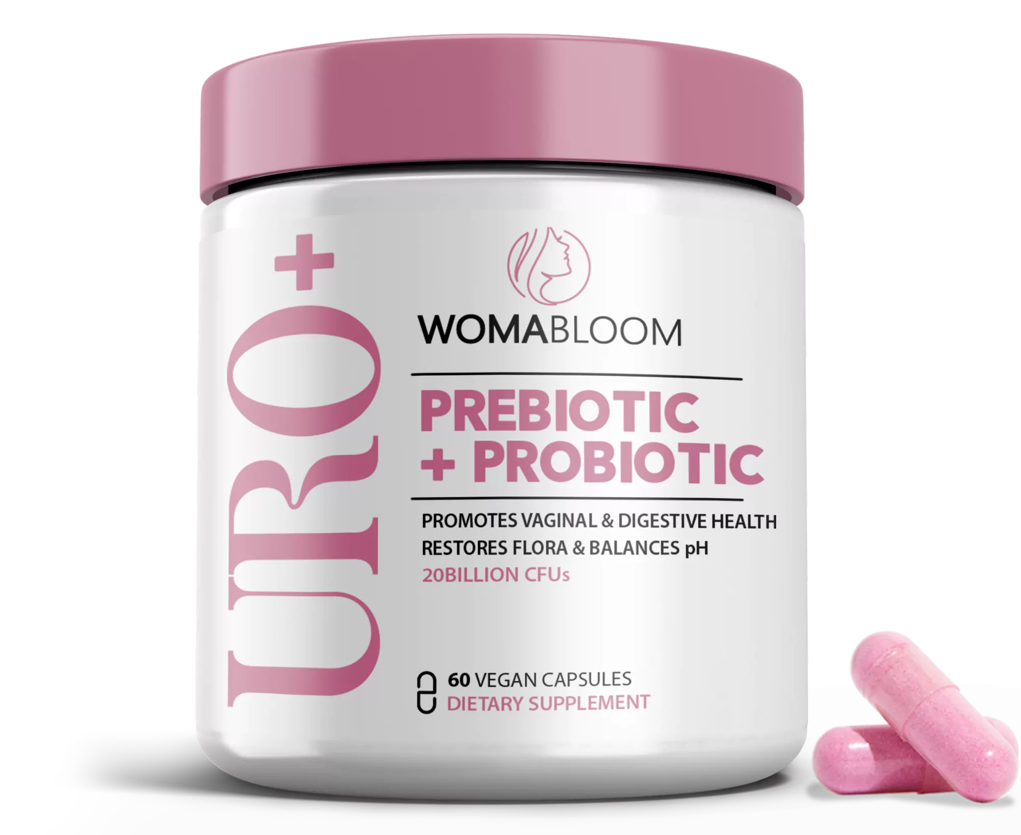 URO⁺ Vaginal Probiotic je prirodni, patentirani sinbiotički dodatak prehrani za vaginalno zdravlje (što znači da sadrži i prebiotike i probiotike) formuliran za podršku zdravom pH-u vagine, mirisu, ravnoteži gljivica i flori.